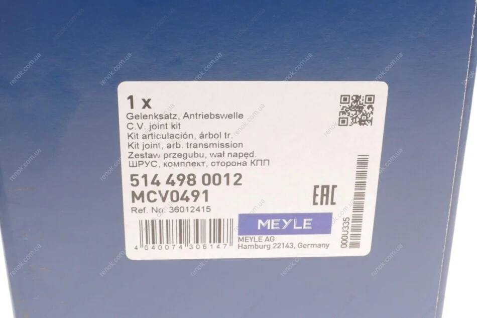 Аналоги "514 498 0012 MEYLE":