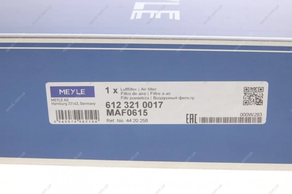Фільтр повітряний Renault Master/Opel Movano 2.3CDTI 10- (з поролоном) MEYLE 612 321 0017 (8200795348, 1654600Q3E, 165462604R)