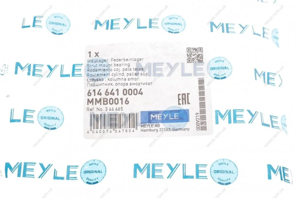 Підшипник амортизатора опорний Opel Astra H/Vectra C 02- MEYLE 614 641 0004 (0344503, 0344625, 0344665)