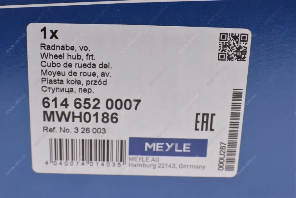 Маточина (передня) Opel Combo 1.7 CDTi 04-/Corsa C 1.7 CDTi 03-09/Meriva A 1.6 i/1.7 D 03-10 MEYLE 614 652 0007 (0326003, 13104175, 326003)