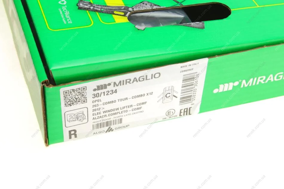Склопідіймач (задній) Fiat Doblo/Opel Combo 10- (R) (електро)(з моторчиком) MIRAGLIO 30/1234 (51814130, 51906919, 140360)