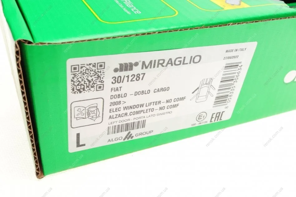 Бренд MIRAGLIO на рівні з іншими трьома брендами LIFT TEK, ELECTRIC-LIFE І PMM належить компанії ALGO GROUP, яка виробляє та постачає склопідіймачі та дверні ручки та засувки для автоскладальних підприємств та на ринок післяпродажного обслуговування автомобілів. Компанія утворилась шляхом злиття кількох компаній і, загалом маючи понад 60 років досвіду, є лідером на європейському ринку. Зараз в Європі діє дві фабрики - в Італії та Польщі.
