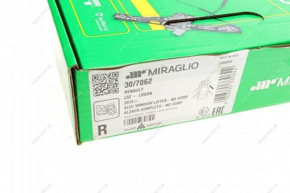 Склопідіймач (передній) Renault Sandero/Dacia Logan 12- (R) (електро) (з моторчиком) MIRAGLIO 30/7062 (807209299R, 807211440R, 907209299R)