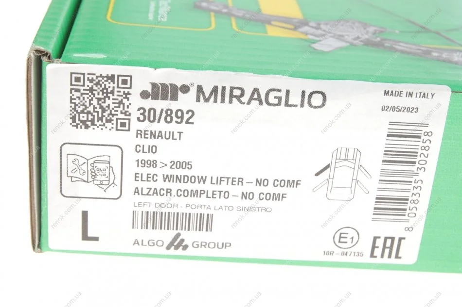 Склопідіймач (передній) Renault Clio 98-10 (L) (електро) (з моторчиком) MIRAGLIO 30/892 (7700842241, 7701207255)