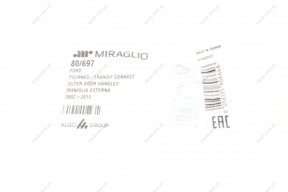 Бренд MIRAGLIO на рівні з іншими трьома брендами LIFT TEK, ELECTRIC-LIFE І PMM належить компанії ALGO GROUP, яка виробляє та постачає склопідіймачі та дверні ручки та засувки для автоскладальних підприємств та на ринок післяпродажного обслуговування автомобілів. Компанія утворилась шляхом злиття кількох компаній і, загалом маючи понад 60 років досвіду, є лідером на європейському ринку. Зараз в Європі діє дві фабрики - в Італії та Польщі.