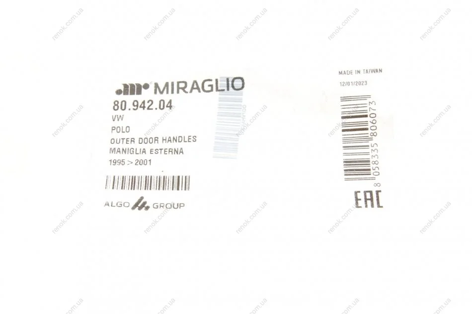 Ручка дверей (передніх/ззовні) VW Polo 94-01 MIRAGLIO 80.942.04 (1H0837061, 6N0837207C, 6N0837207D)