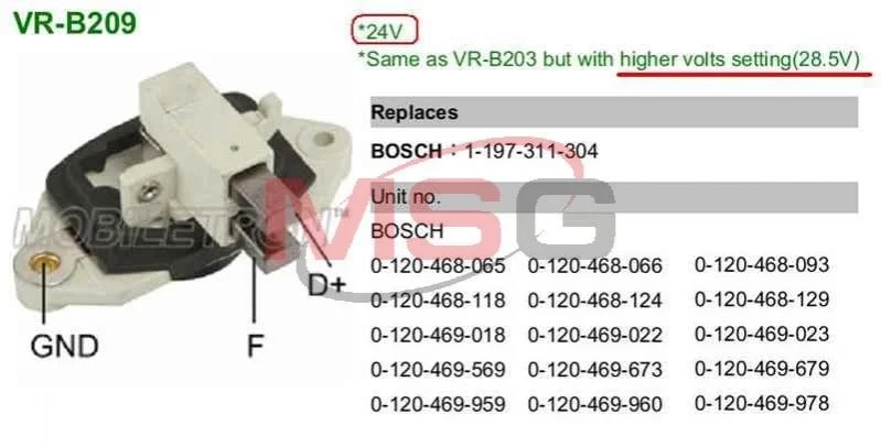 Регулятор напруги генератора MOBILETRON VRB209 (0001541705, 0001543405, 0001543505)