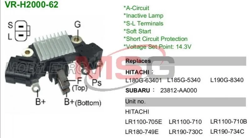 Регулятор напруги генератора MOBILETRON VRH200062 (l190G8340, L180G63401, 232152J602)