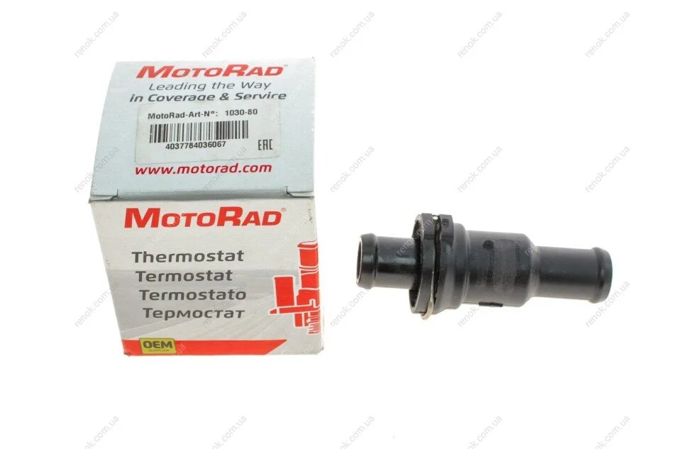 Термостат системи охолодження (80°C, в корпусі) AUDI A6 C6, A6 C7, A8 D3 SEAT ALTEA, ALTEA XL, LEON, TOLEDO III VW BEETLE, EOS, GOLF V, GOLF VI, JETTA III, JETTA IV, PASSAT B6 1.8-6.0 05.03-07.19 MOTORAD 1030-80