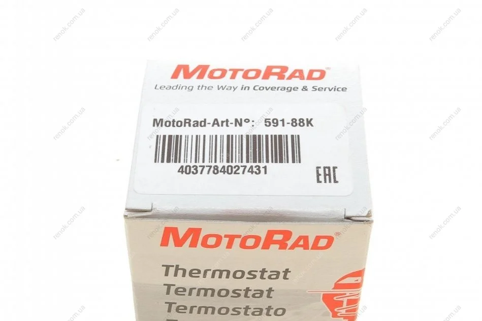 Термостат системи охолодження (88°C) AUDI 100 C4, 80 B2, 80 B3, 80 B4, 90 B3, A2, A3, A4 B5, A4 B6, A4 B7, A6 C4, A6 C5, CABRIOLET B3 SEAT ALHAMBRA, ALTEA, ALTEA XL, AROSA 1.0-2.3 08.80-04.12 MOTORAD 591-88K (068121113H, 032121113, 056121113)