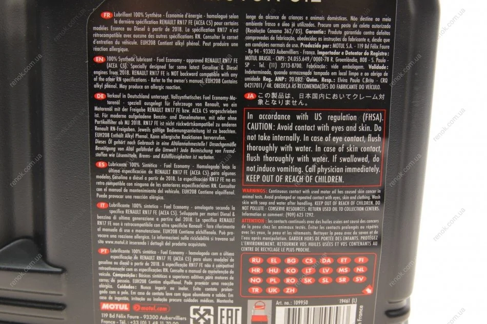 Масло моторне /SPECIFIC 17 FE 0W20 5L/109950 MOTUL 102406