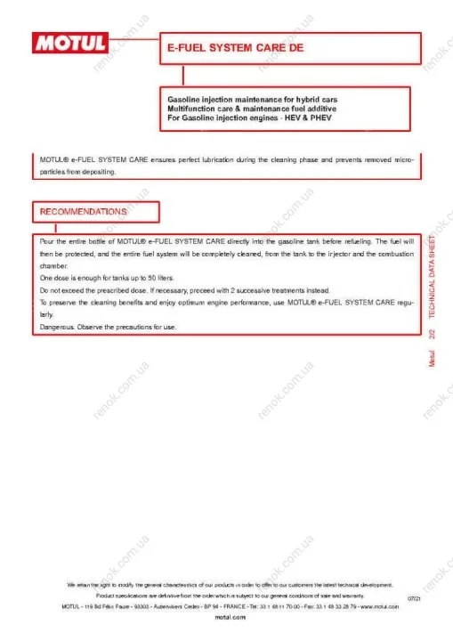 Присадка-очисник паливної системи e-Fuel System Care Hybrid (300мл) (102415) MOTUL 102416
