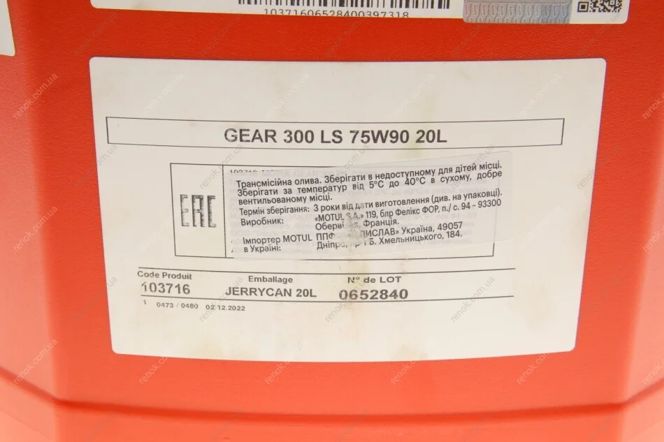 Олива 75W90 Gear 300 LS (20L) (1103716) MOTUL 102622
