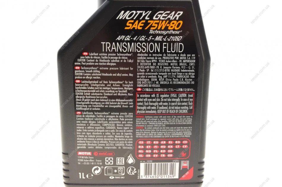 Олива 75W80 Gear (1L) (105782/101154) MOTUL 823401 (001989840309, 001989840313, KE91699932R)