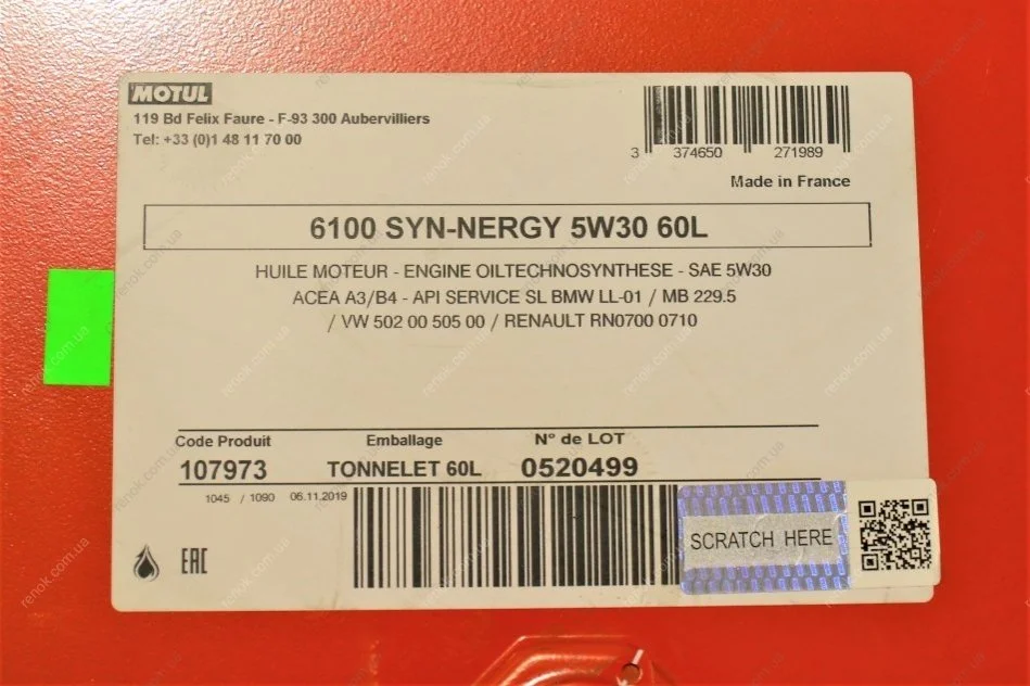 Олива 5W30 Syn-nergy 6100 (60L) (MB 229.5/Renault RN0710/RN0700/VW 502 00/505 00) (107973) MOTUL 838361