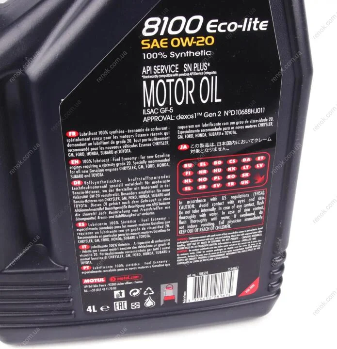 Олива 0W20 ECO-lite SAE 8100 (4L) GM dexos1 GEN3(108535) MOTUL 841154 (ke90090133r, ke90090143r, klal200204)