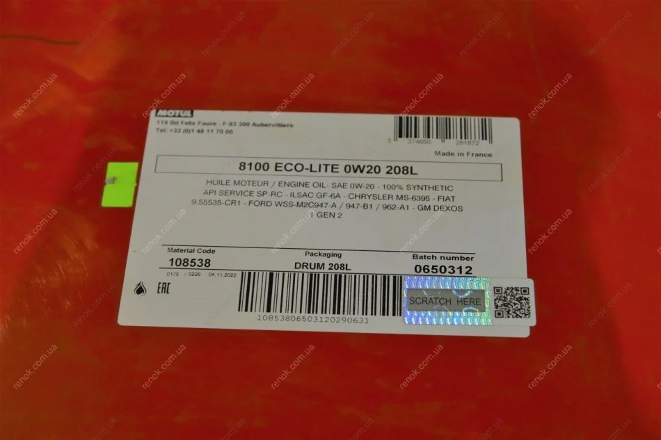 Олива 0W20 ECO-lite SAE 8100 (208L) GM dexos1 GEN3(108538) MOTUL 841178 (ke90090134)