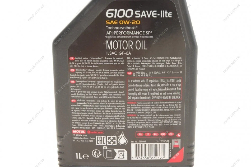 Олива 0W20 SAVE-lite SAE 6100 (1л) (dexos1/Ford 947-A) (108002) MOTUL 841211 (ke90090133r, ke90090143r, klal200204)