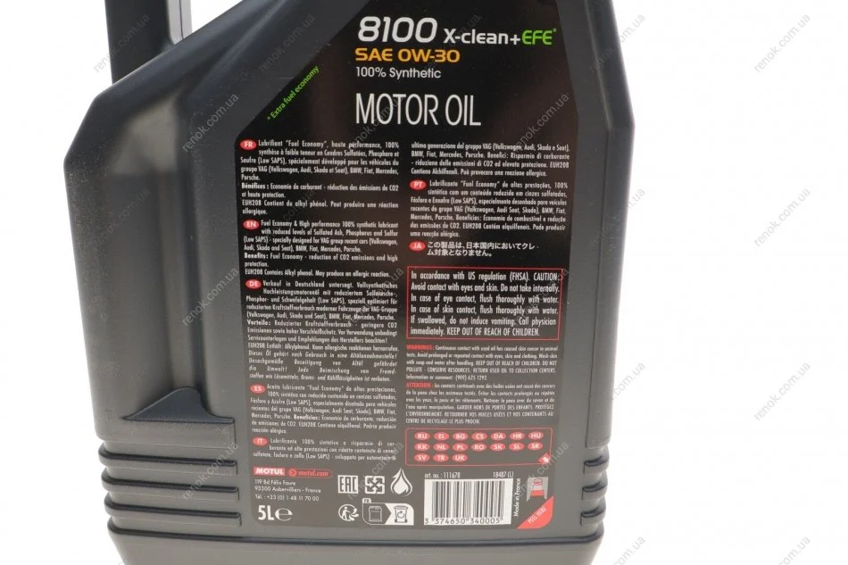 Олія моторна /8100 X-clean+ EFE 0W30 5L/111678 MOTUL 853951