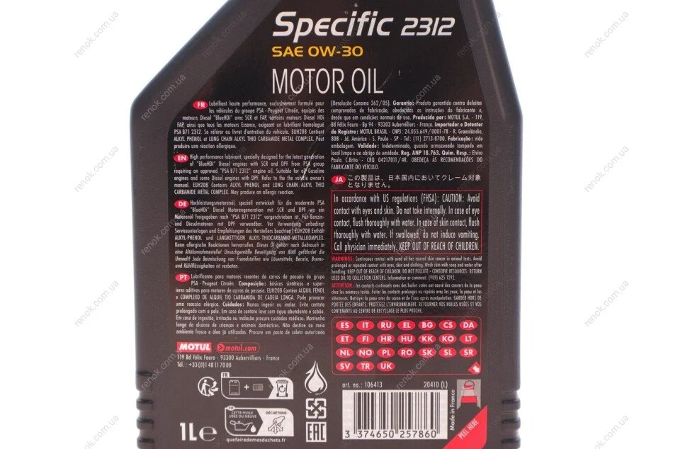 Олива 0W30 Specific 2312 (1л) (PSA B71 2312) MOTUL 867511