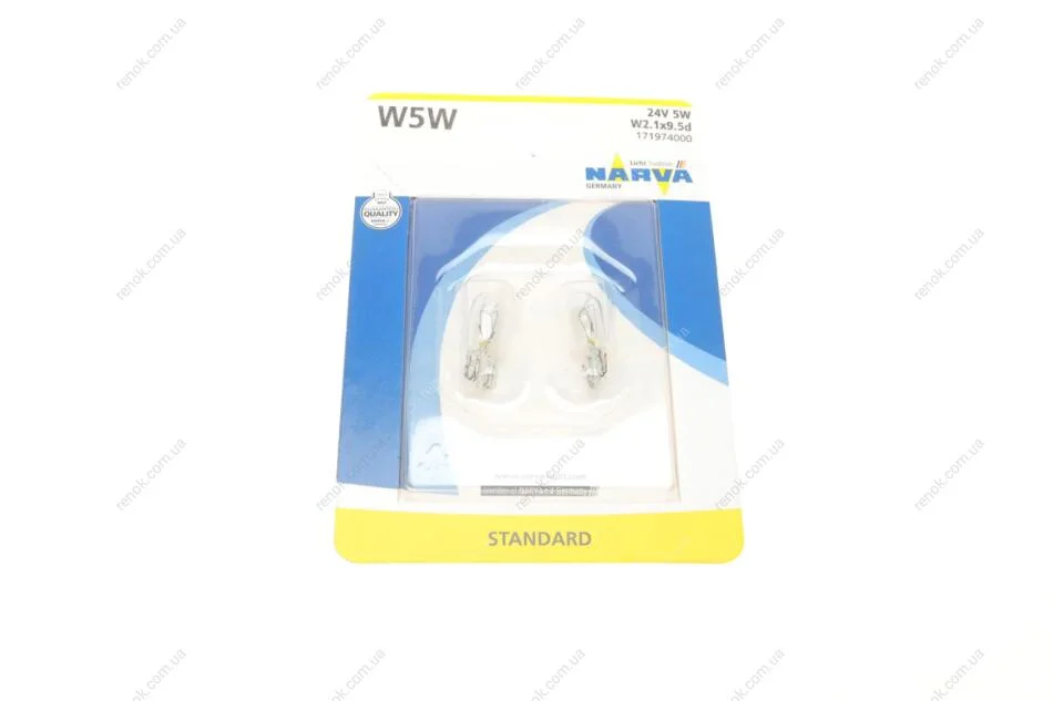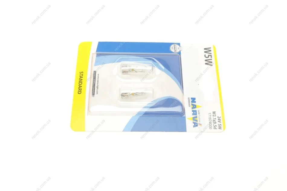 Автолампа W5W 24V 5W W2.1x9.5d (без цоколя) (блістер/к-кт 2шт) NARVA 171974000