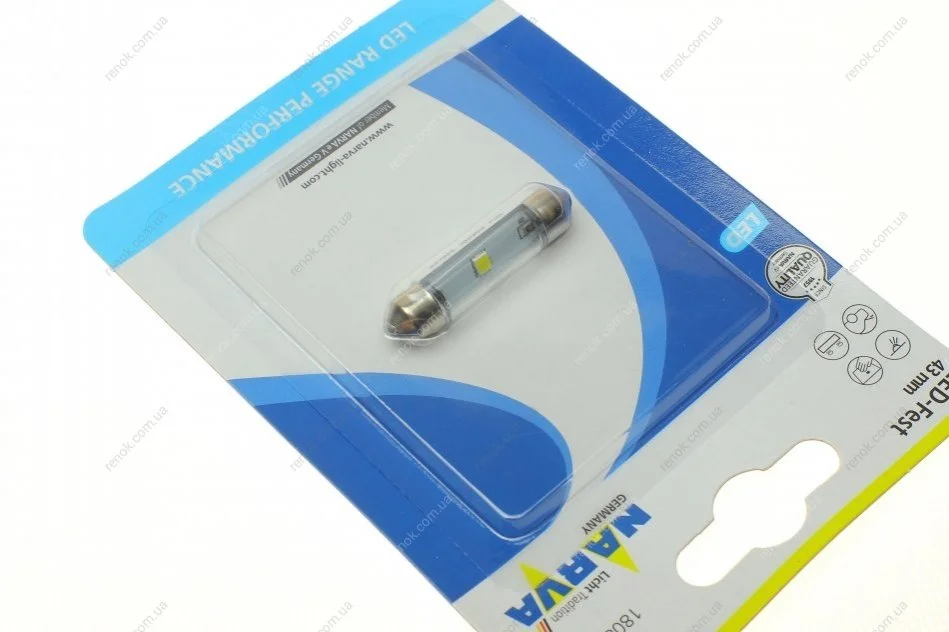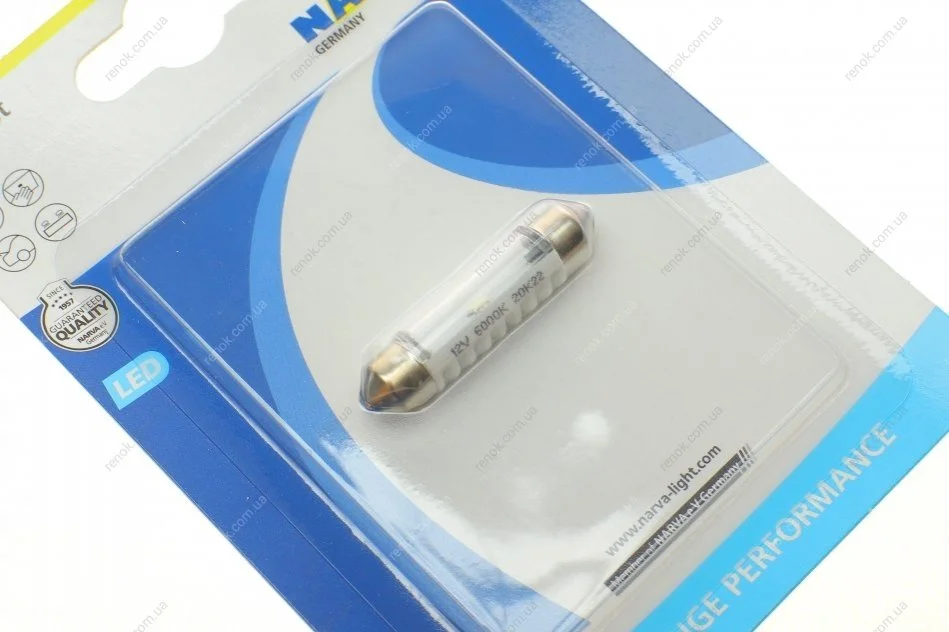 Автолампа 12V 0,6W SV8.5 (9.8x43mm) Festoon (LED) (блістер/1шт) NARVA 180804000