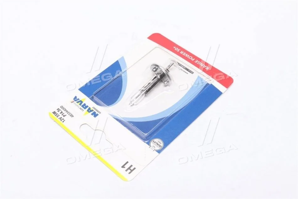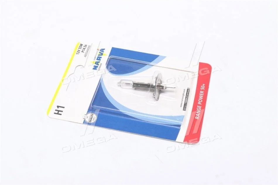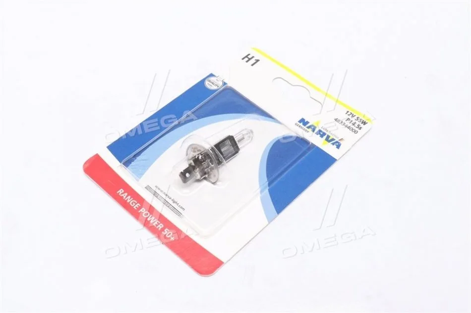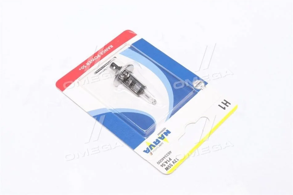 Лампа накаливания H1 12V 55W P14,5S RANGE POWER +50 (Blister 1шт) NARVA 48334B1 (n072601012270)