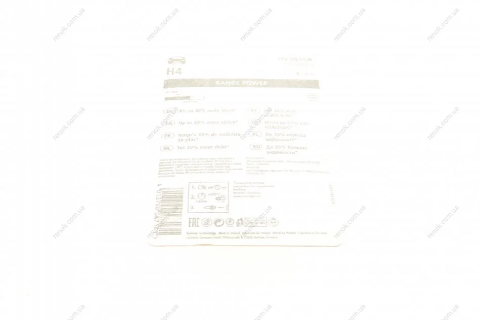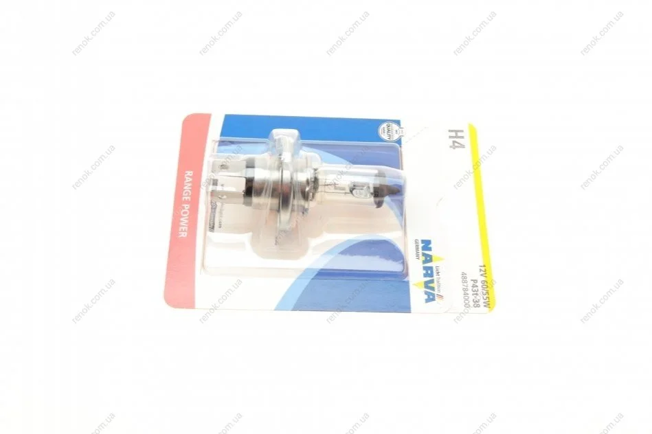 Автолампа H4 12V 60/55W P43t Range Power (+30%) (блістер/ 1шт) NARVA 488784000
