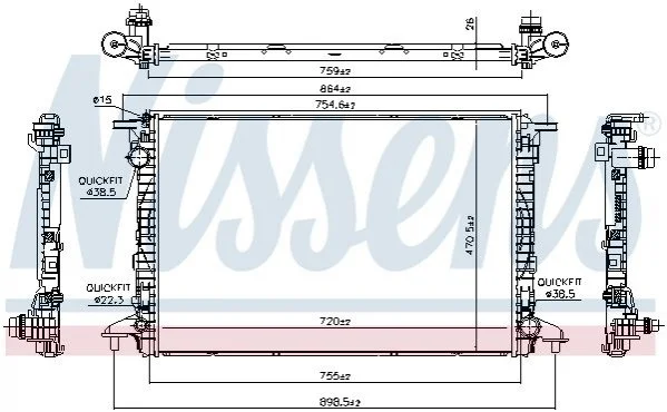 Радіатор AUDI Q7 (4M) (15-) 3.0 TFSi NISSENS 606462 (8W0121251AA, 8W0121251M)