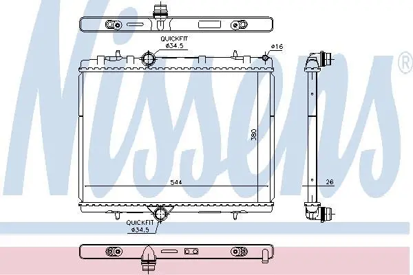 Радіатор CITROEN BERLINGO (B9) (08-) 1.2 THP NISSENS 636029 (9800482380, R14815, 1610824180)