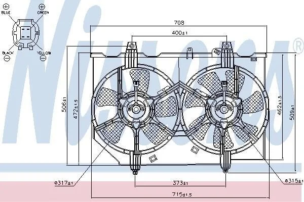 NISSAN Вентилятор радіатора (з дифузором) X-TRAIL I 2.0 01-, 2.5 02- NISSENS 85279 (214818H303, 214818H310, 214818H31A)