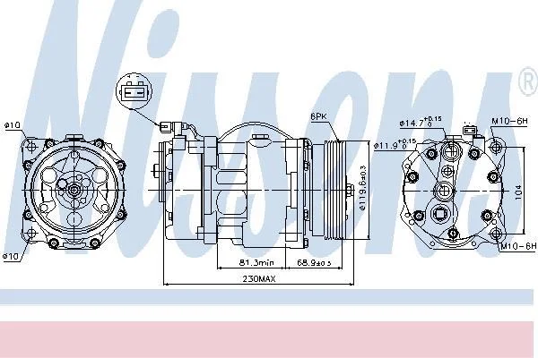 Компресор VW GOLF III(91-)1.6 i(+)[OE 95NW19D629CB] NISSENS 89040 (1067110, 1067111, 1H0820803D)