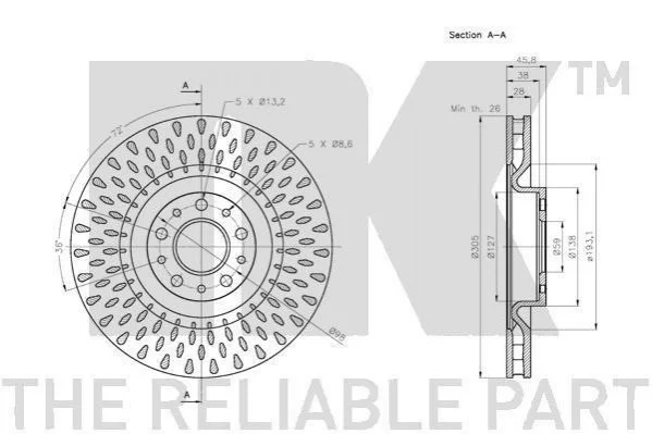 Гальмівний диск перед. Fiat Doblo 10- NK 202366 (51854567, 51897455, 51914663)