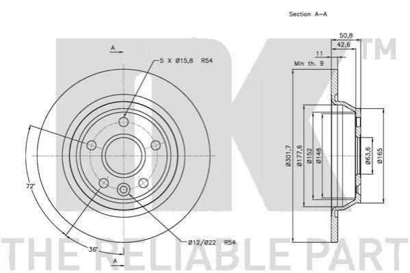 Диск гальмівний задн. Ford Galaxy/Kuga/S-MAX 2,0-2,2 TDCI 08- NK 202571 (1385590, 1405500, 1379931)