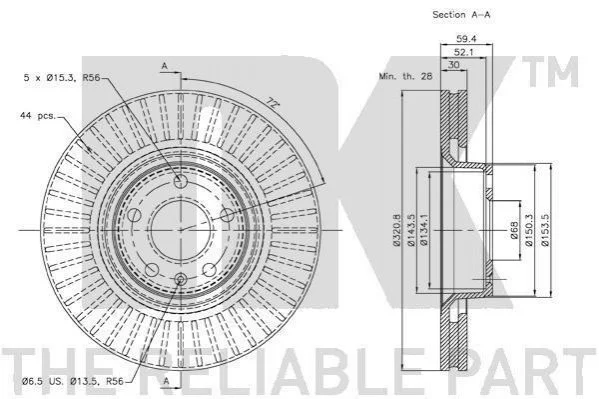 Гальмівний диск NK 2047100 (4E0615301AD, 4F0615301AD, 4F0615301E)