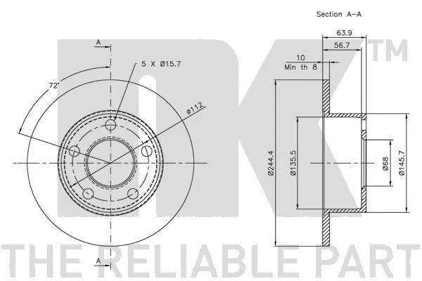 Диск гальмівний Audi 100/A6, VW Passat B5 зад. NK 204744 (4A0615301A, 4A0615601A, 4AO615301A)