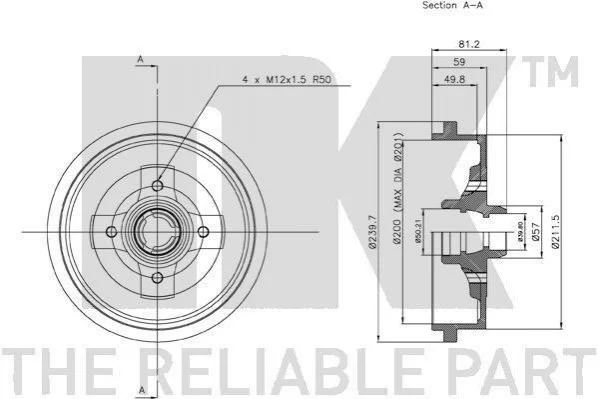 Гальмівний барабан зад. Audi 80/Seat Arosa,Cordoba,Ibiza II,Toledo/Skoda Favorit/VW Caddy II/VW Golf III/Polo 1.0-2.3 79- NK 254709 (115330192, 191501615A, 1H0501615A)