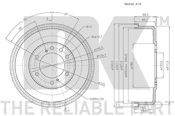 Гальмівний барабан NK 262204 (432062S600, 43206VE860, 43206VM30B)