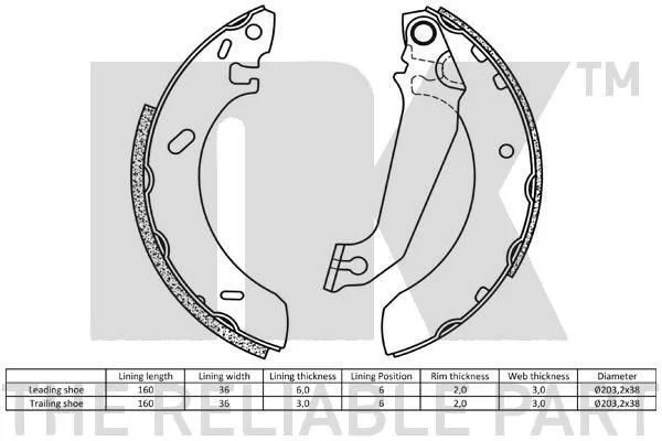Колодки гальмівні барабанні, комплект NK 2725536 (6050944, 6500944, 91AB2200LA)