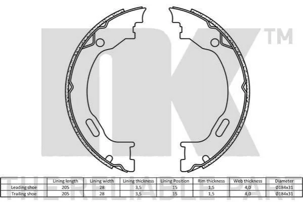 Колодки гальмівні барабанні NK 2733689 (05137624AA, 1634200220, 1634200220MF)