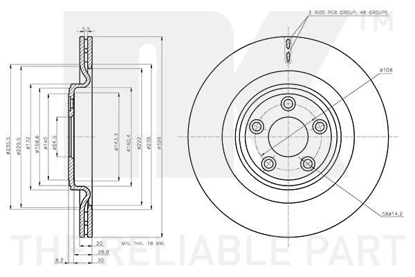 Диск гальмівний невентильований NK 311227 (c2C25339, C2C26352, C2D26352)
