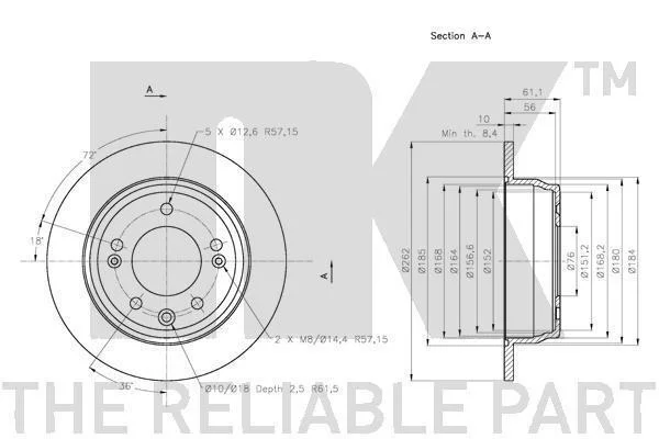 Диск гальмівний невентильований NK 313527 (584111H300, 584111H100)