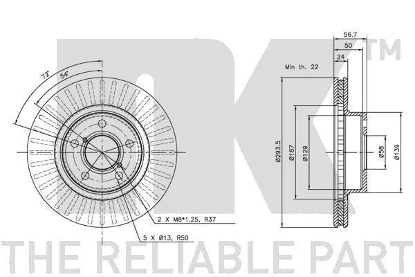 Товщина гальмівного диску (мм): 24
