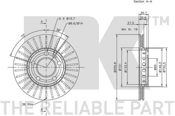 Диск гальмівний невентильований NK 314758 (1J0615301D, 1J0615301L, 1JE615301)