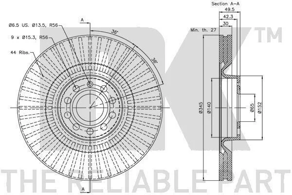 Диск гальмівний невентильований NK 314786 (1K0615301AB, 1K0615301M, 8E0098301AB)