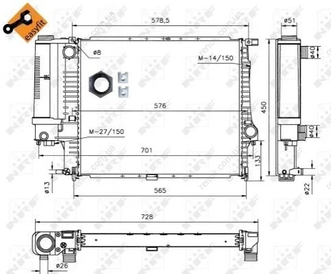 Радіатор NRF 53852 (17111719306, 17111719308, 17111737760)