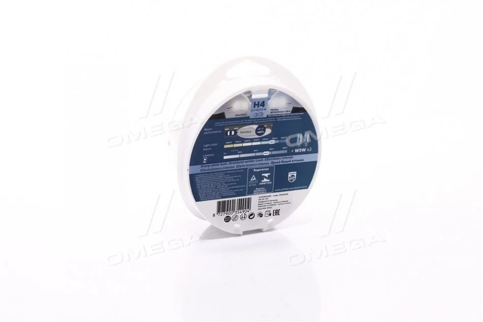 Автолампа H4/W5W SM 12V 60/55WP43t-38 WhiteVision ultra +60% (4200K) (2 шт.+2 шт W5W у блістері) PHILIPS 12342WVUSM (2629489908, N000000000374, 262940F000)