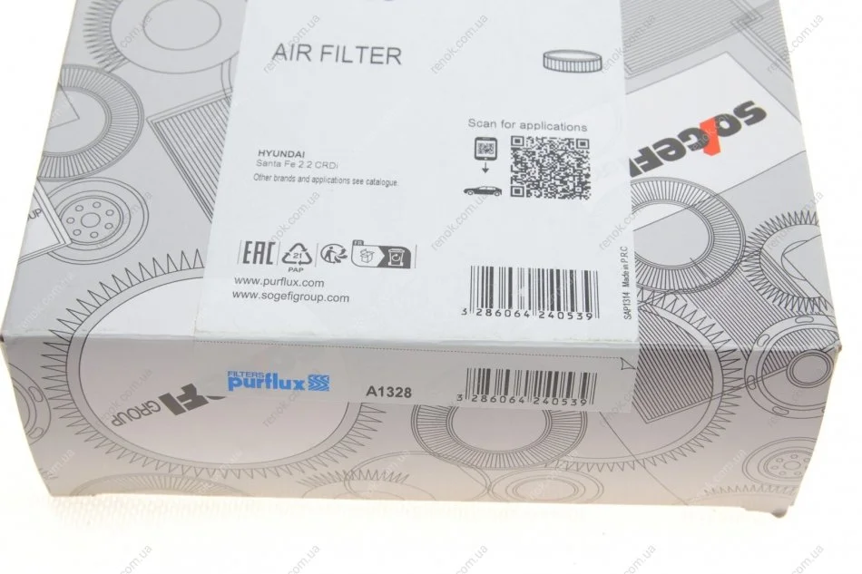 Фільтр повітряний Hyundai Santa Fe 2.2CRDi/2.7V6 06-12 Purflux A1328 (281132B000, J1320537)
