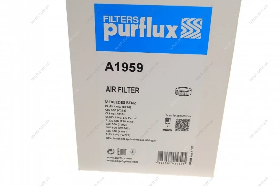 Фільтр повітряний Purflux A1959 (2780940004, A2780940004, 278094000490)