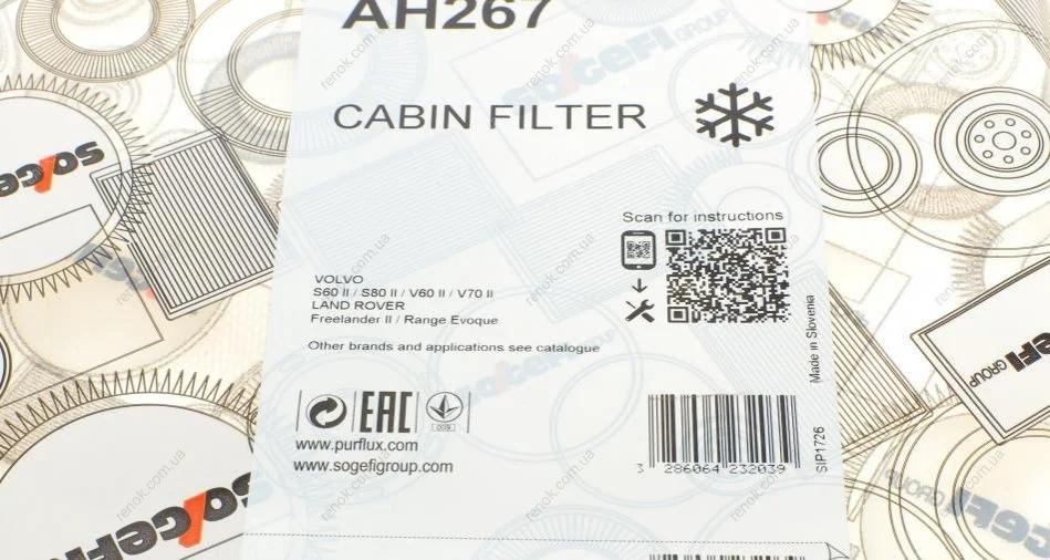 Фільтр салону Purflux AH267 (30767022, 31449209, 31366124)